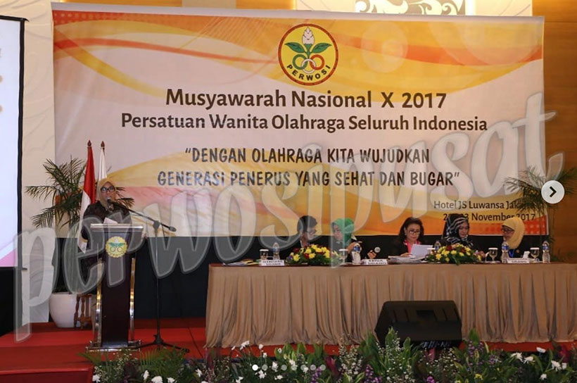 Musyawarah Nasional X Tahun 2017 Persatuan Wanita Olahraga Seluruh Indonesia (PERWOSI) diselenggarakan di Hotel JS Luwansa Jakarta pada tanggal 22-23 November 2017 dan berdasarkan Hasil Musyawarah Nasional terpilih Ketua Umum Perwosi periode 2017-2021 yaitu Ny. Tri Tito Karnavian menggantikan Ny. Devi Luhut Panjaitan yang menjadi Ketua Umum Perwosi periode 2013-2017. Hadir dalam acara tersebut Pengurus Pusat Perwosi dan Pengurus Perwosi dari 33 tingkat kepengurusan Provinsi Se-Indonesia. Munas kali ini mengusung tema “Dengan Olahraga Kita Wujudkan Generasi Penerus Yang Sehat dan Bugar”.