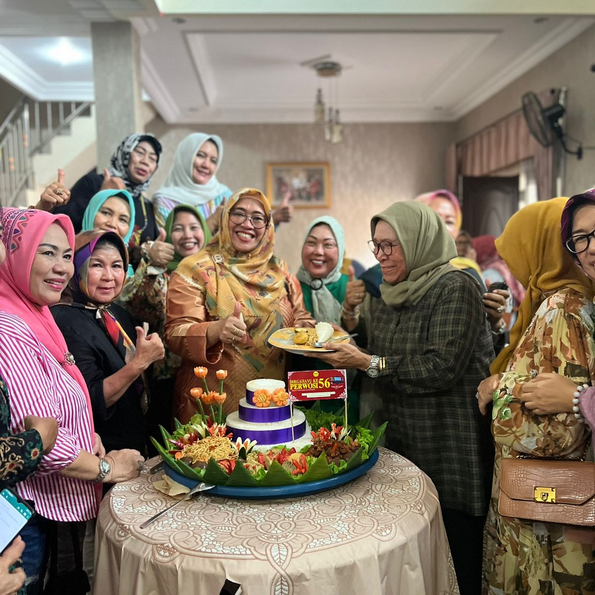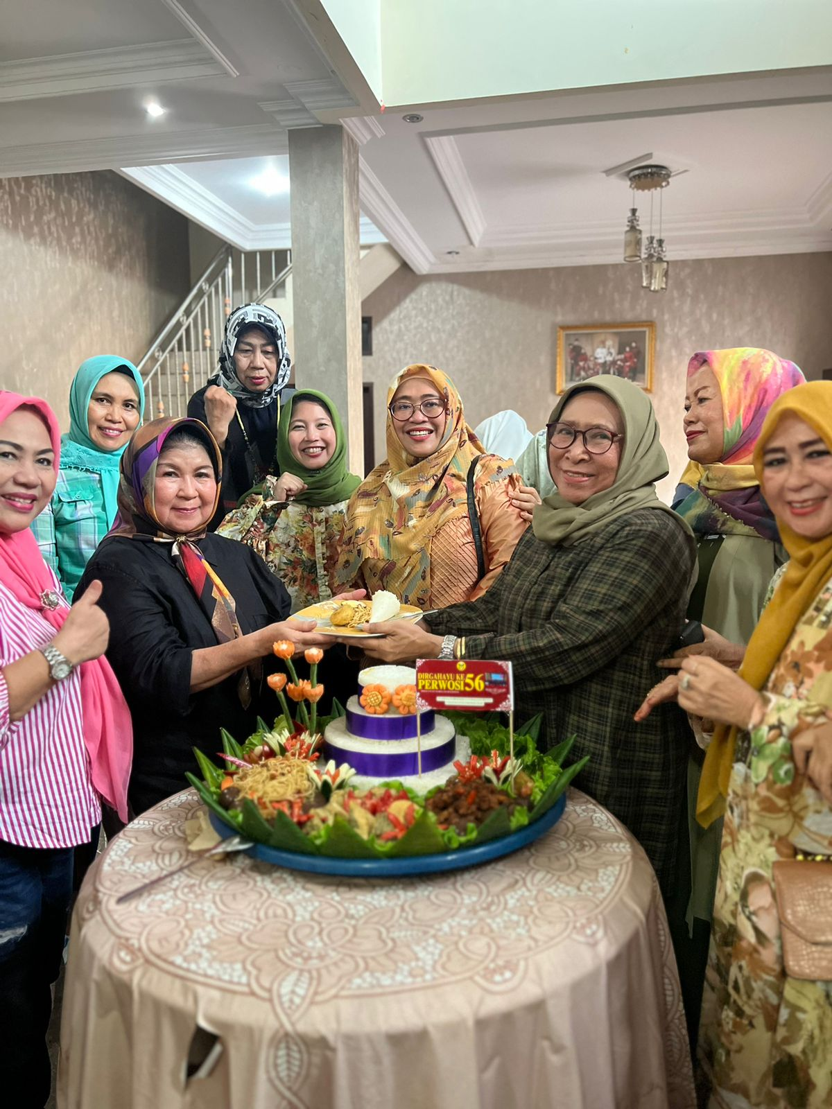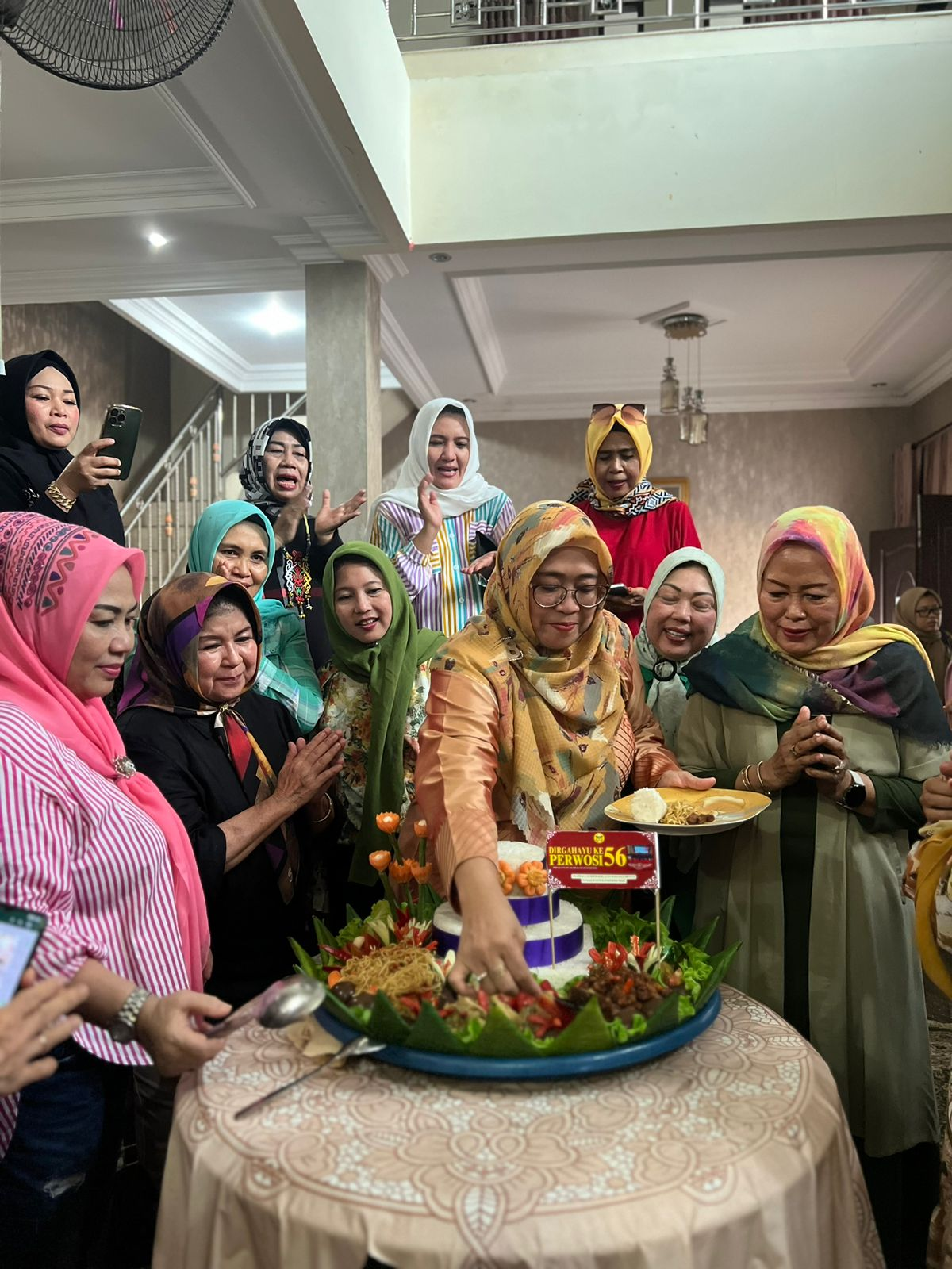 Ibu ketua perwosi Kaltim beserta pengurus potong tumpeng untuk HUT perwosi.